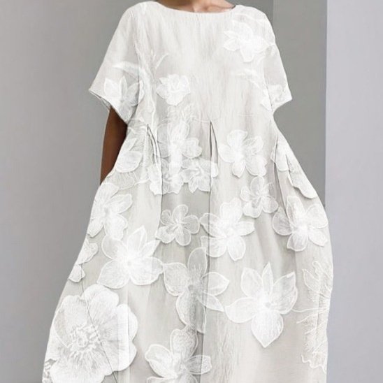 Puff Sleeve Long Dress Printed V-neck Hollow Out